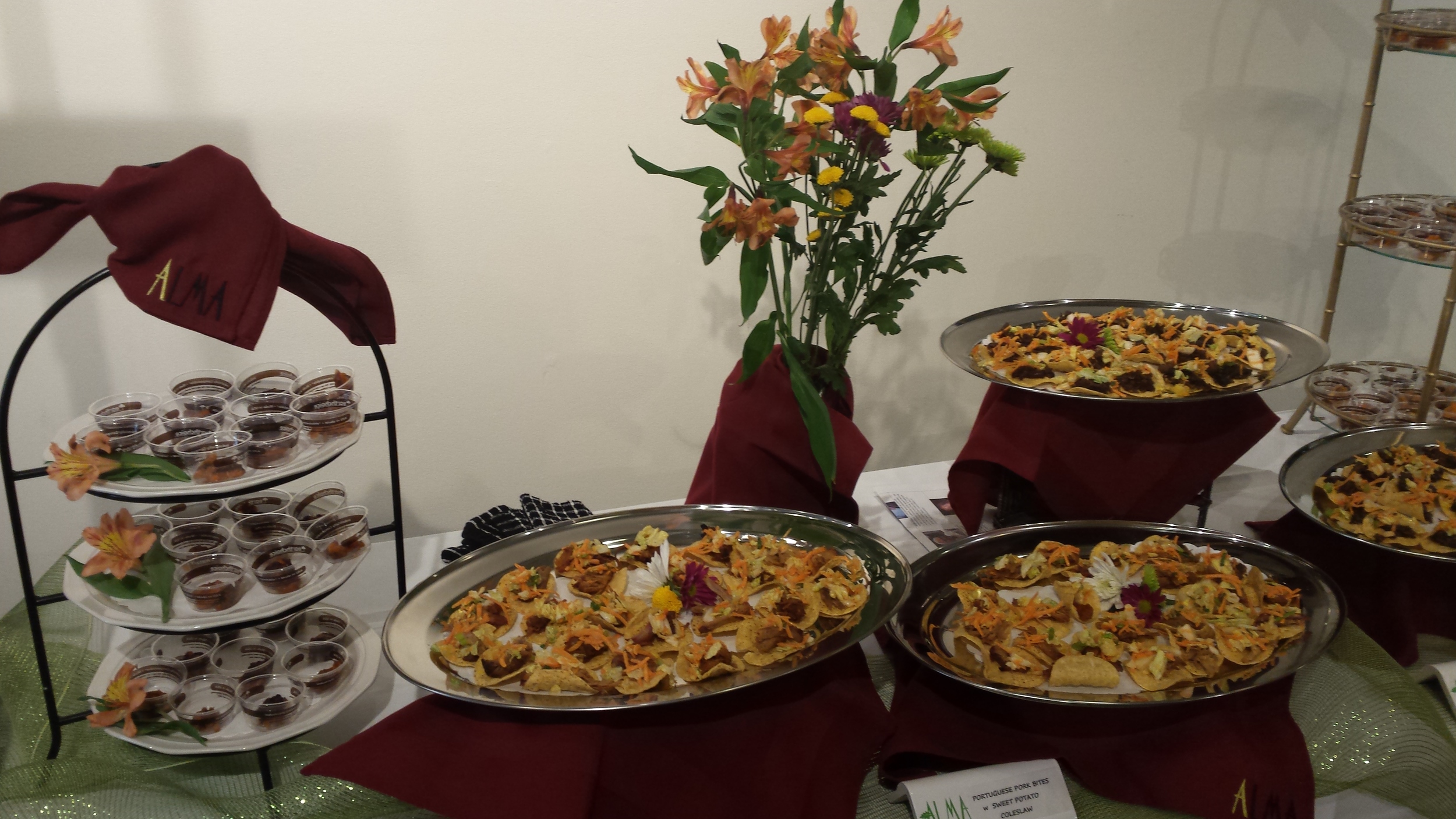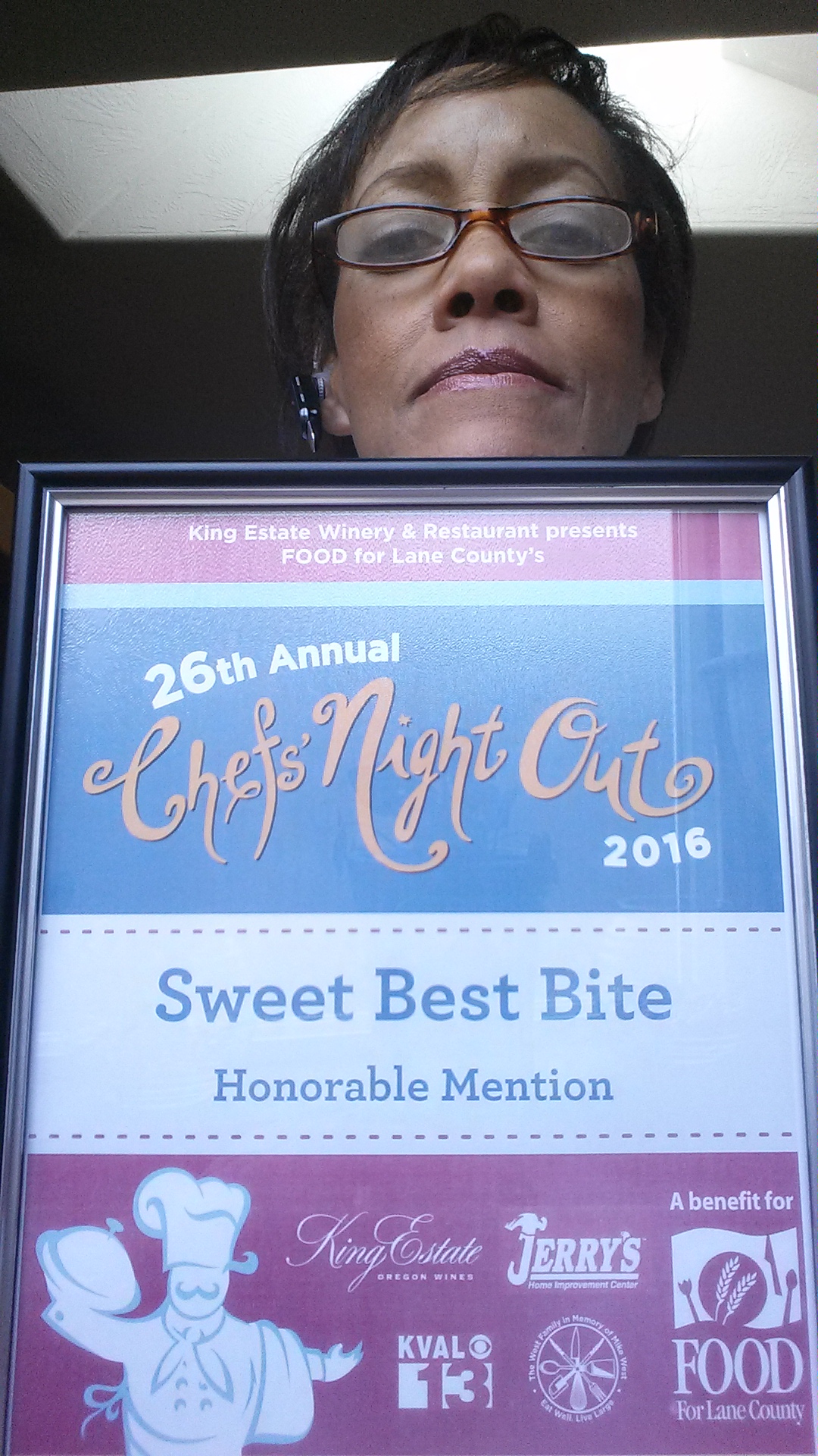 I promised you pics from Food for Lane County's biggest public fundraiser, Chef's Nite Out. What a phenomenal experience to actually serve so many people and know that the money being raised is going to feed the many less fortunate than those in attendance. My Lengua/Oxtail Bites w Sweet Potato Coleslaw and Smokey Pork Bites w Sweet Potato Coleslaw were a hit! The coup-de-grace for me though was the Sweet Potato Cobbler w Lavender Caramel Sauce--it got an Honorable Mention in the Dessert category! I had decided, at the last minute, to serve it so fortuitous that it was soooo well received. I loved the way many people sniffed the cup before tasting it---the smell of cinnamon and sugar takes one back to their childhood instantly. My mother's recipe---I watched her make it every holiday season growing up and she would be over-the-moon thrilled that it got such rave reviews. THANK YOU to all who deemed it worthy of a vote! I love feeding people---got it honestly from her and my older sister. Life is good.....