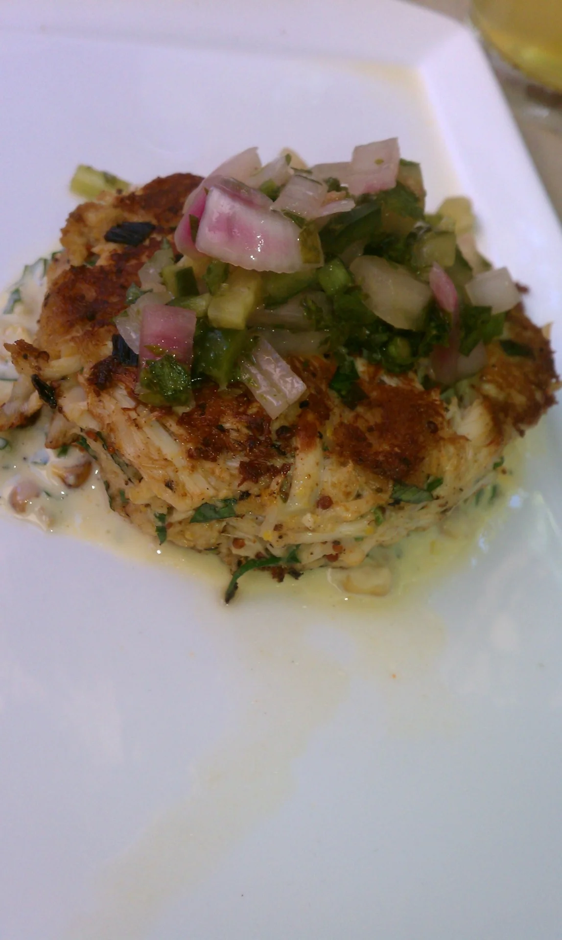 Crabcake with smoked corn tartar and green tomato relish in top pic; fried green tomatoes with herb cream cheese, smoked tomato jam, and green onion aioli in bottom pic; carolina cooking at it’s best. Yummm! Newer:Older: PostedJune 24, 2014 AuthorRobin Brown-Wood